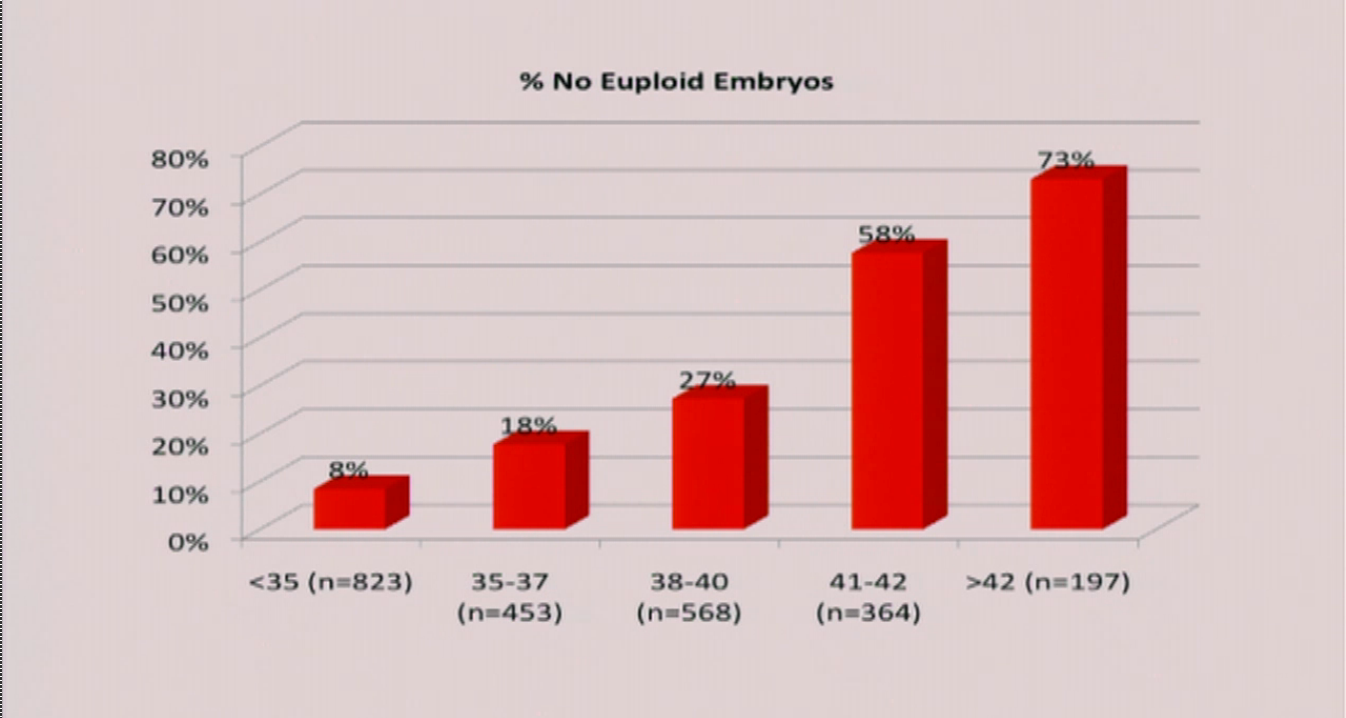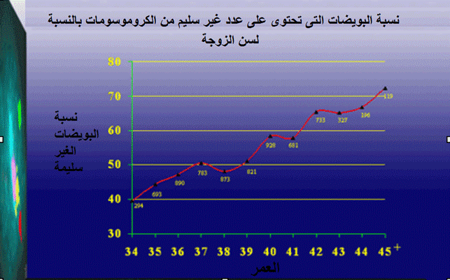 ٢- نقص جودة تلك البويضات، ولهذا فإن إنخفاض نسب الحمل في وجود البويضات يعكس إنخفاض جودة البويضات. ولو أردنا أن نحدد ما يعني الجودة ، إنما يعكس أمرا واحدا وهو المحتوى الوراثي للبويضة والمتمثل في عدد الكروموسومات.