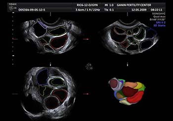 * لأن إمكانيات الجهاز الخاص بالسونار الثلاثي الأبعاد له القدرة في دراسة الأوعية الدموية الدقيقة الموجودة بالرحم، وهو ما لا يتوافر للأجهزة العادية. بل أن الجيل الأخير من الأجهزة الحديثة المتطورة لأجهزة السونار ثلاثي الأبعاد (والتي تم إدخالها في مركز جنين حديثا) أضافة إمكانية التقييم الكمي والنوعي للأوعية الدموية التي تغذي الرحم والمبيضين وهو ما لا يتوافر حتي في الأجهزة العادية ثنائية الأبعاد التي يمكنها دراسة الأوعية الدموية. متابعة التبويض بإستخدام برنامج خاص يتم من خلاله التحديد التلقائي لحجم والأبعاد الخاصة بالحويصلات التي تنمو داخلها البويضات، وهو ما يعني سرعة في الأداء وأيضا دقة في التقييم والذي يعكس بالتالي على جودة البويضات والتحديد الأفضل لتوقيت نضوجها.